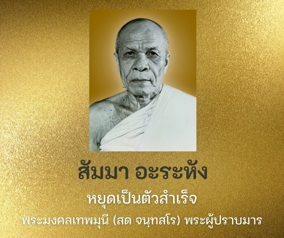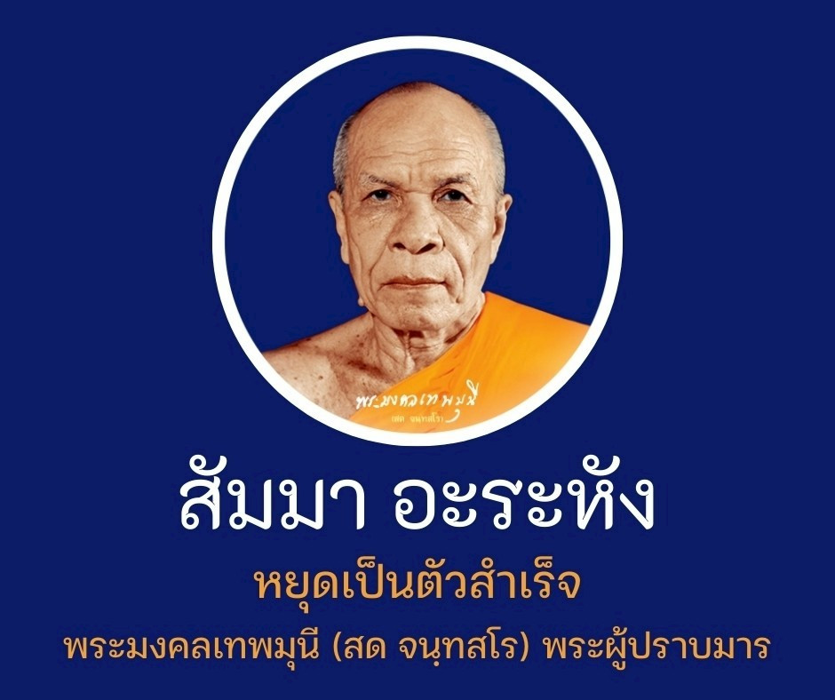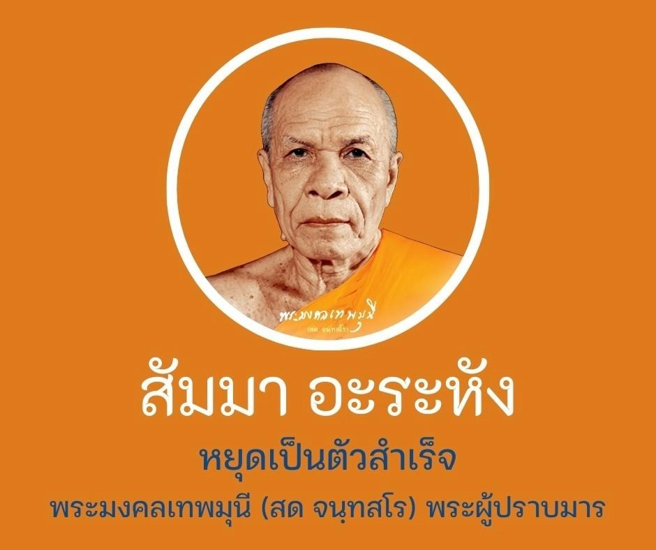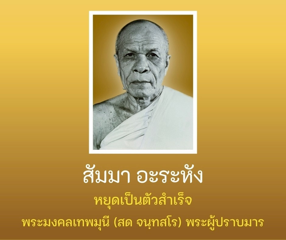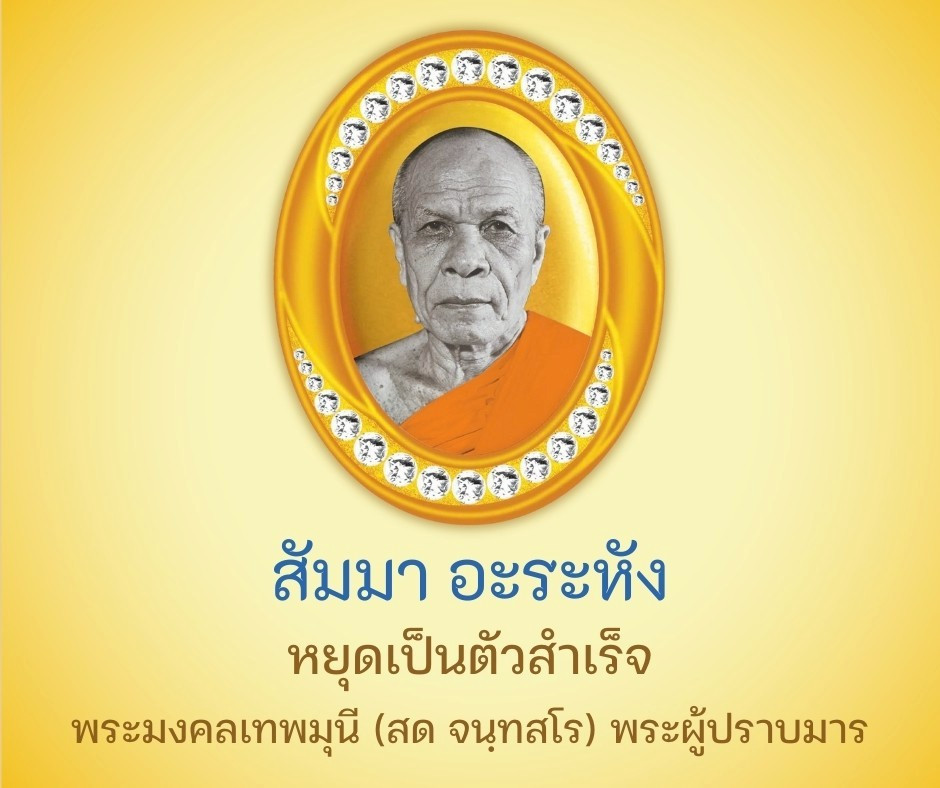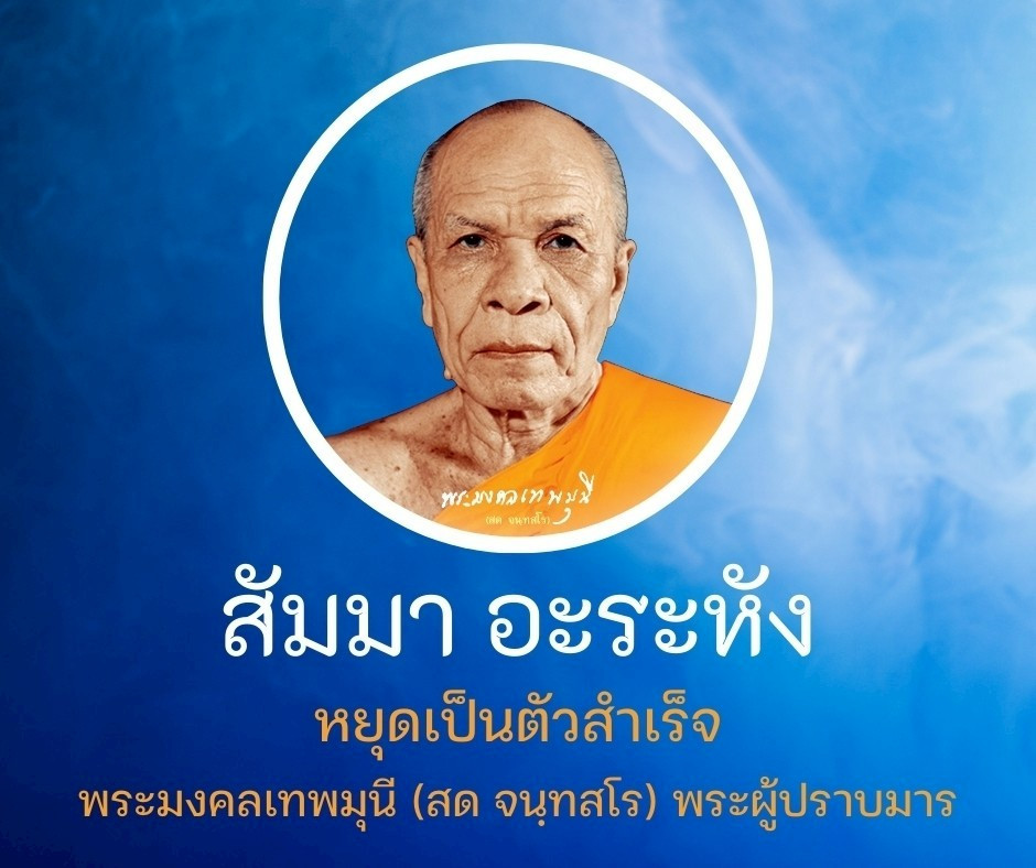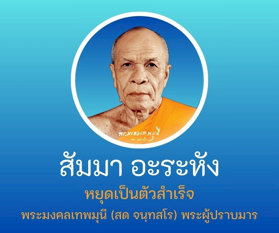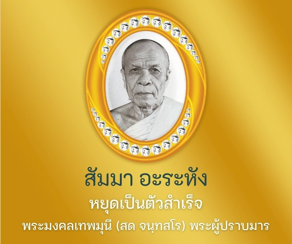 "May we constantly recall the Most Venerable Luangpu, Phramongkolthepmuni (Sodh Candasaro), the Mara Vanquisher, and keep him in mind at all times."