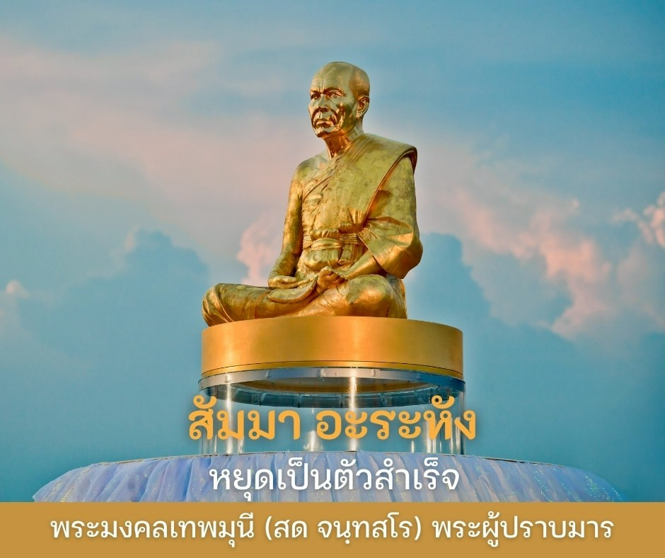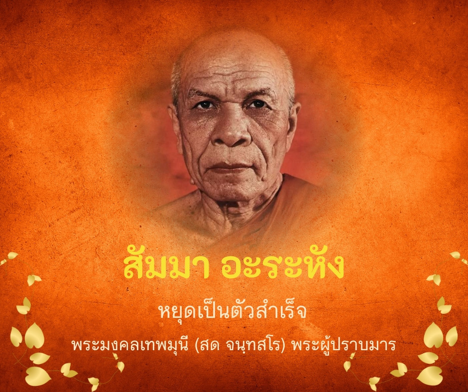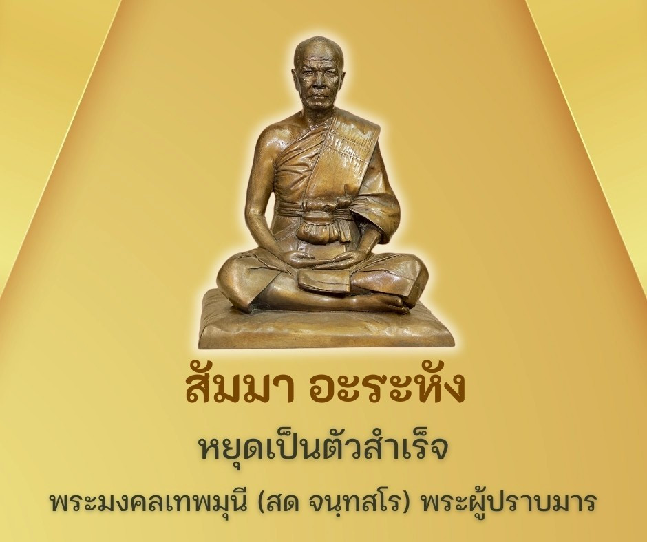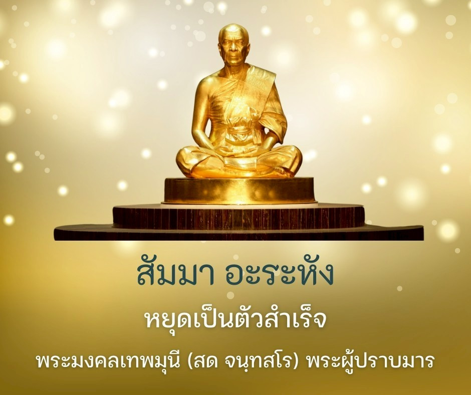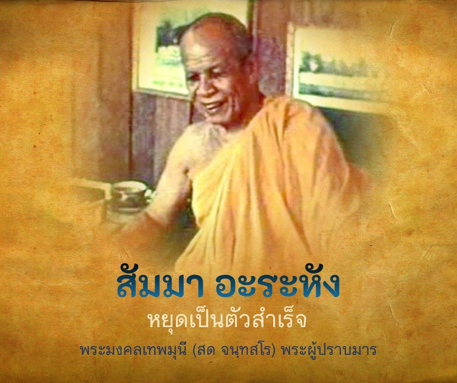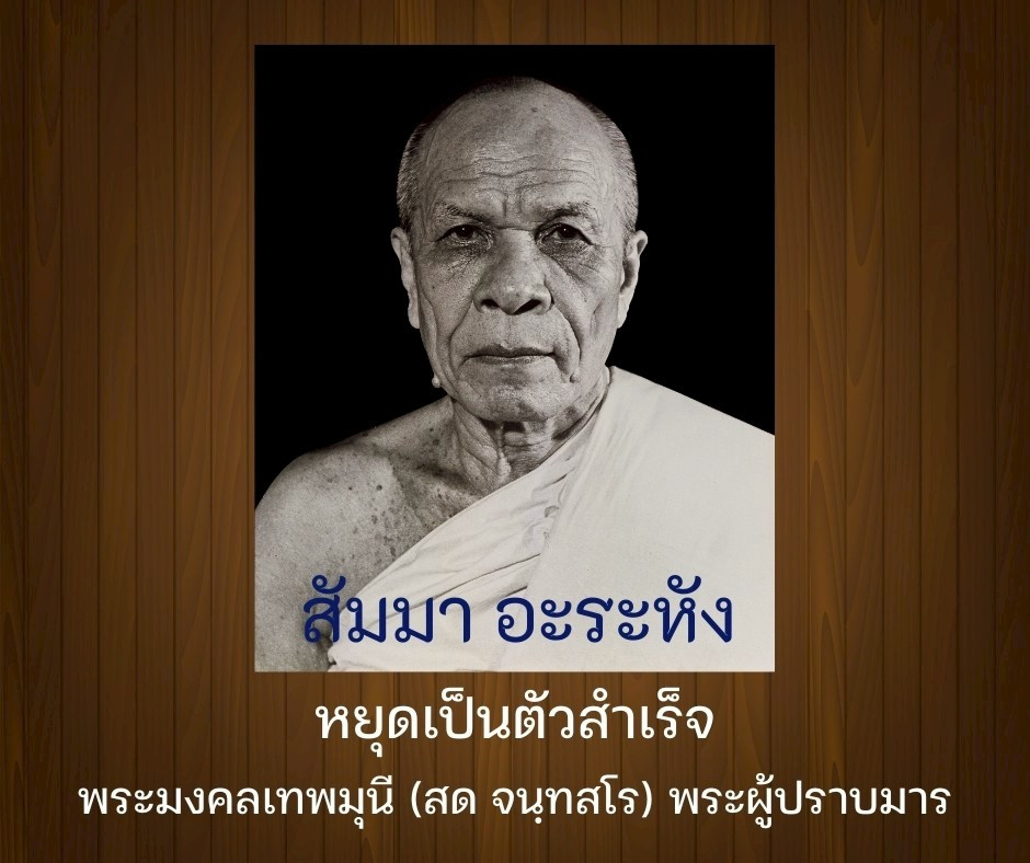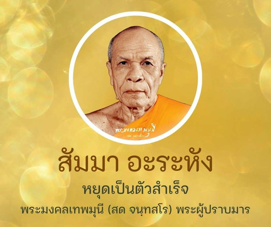 "May we constantly recall the Most Venerable Luangpu, Phramongkolthepmuni (Sodh Candasaro), the Mara Vanquisher, and keep him in mind at all times."
