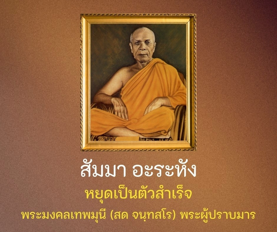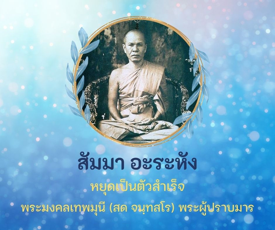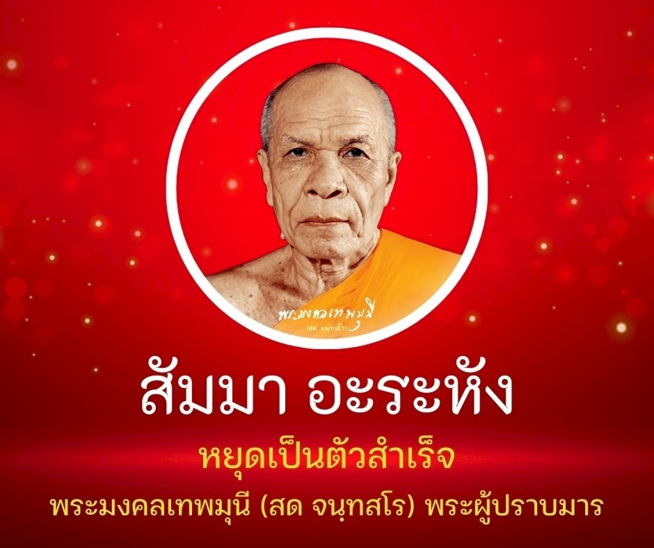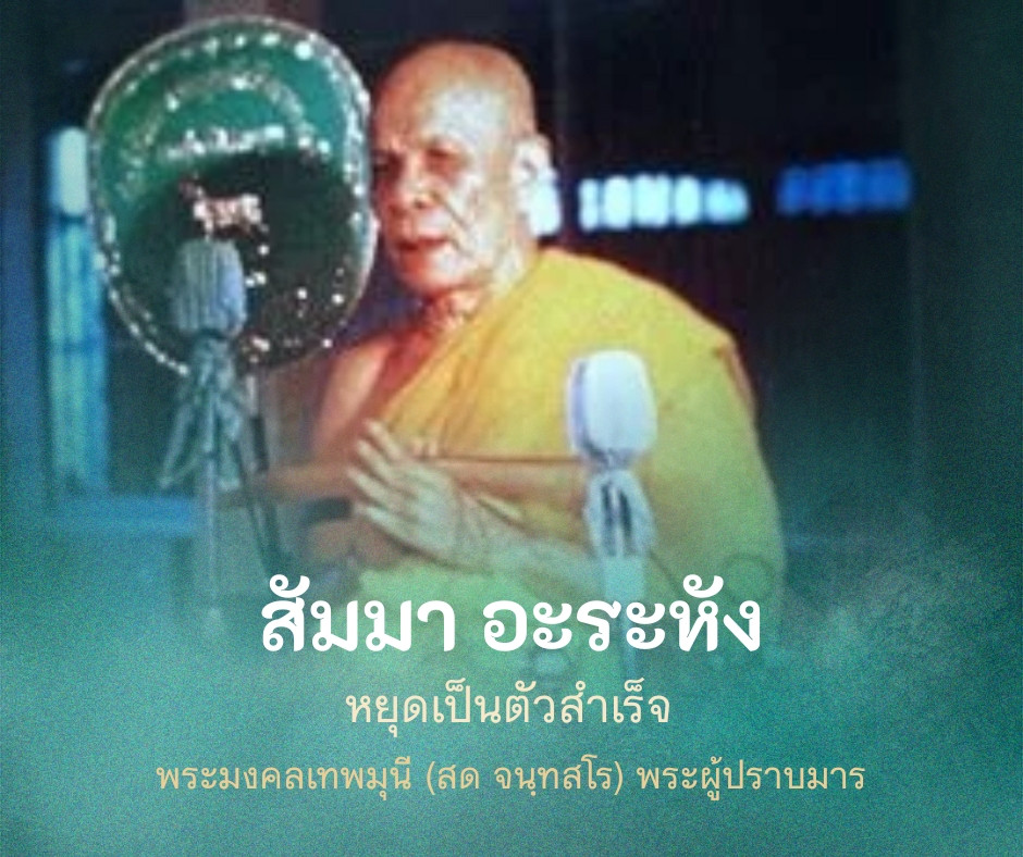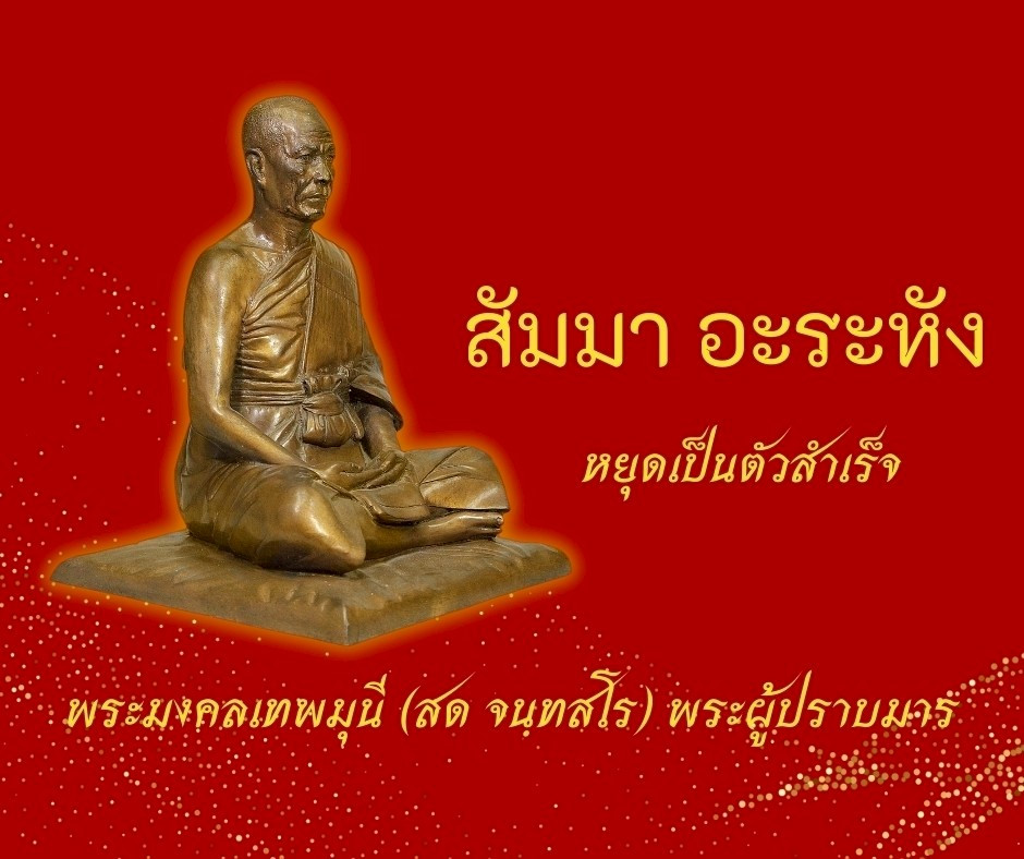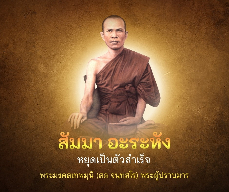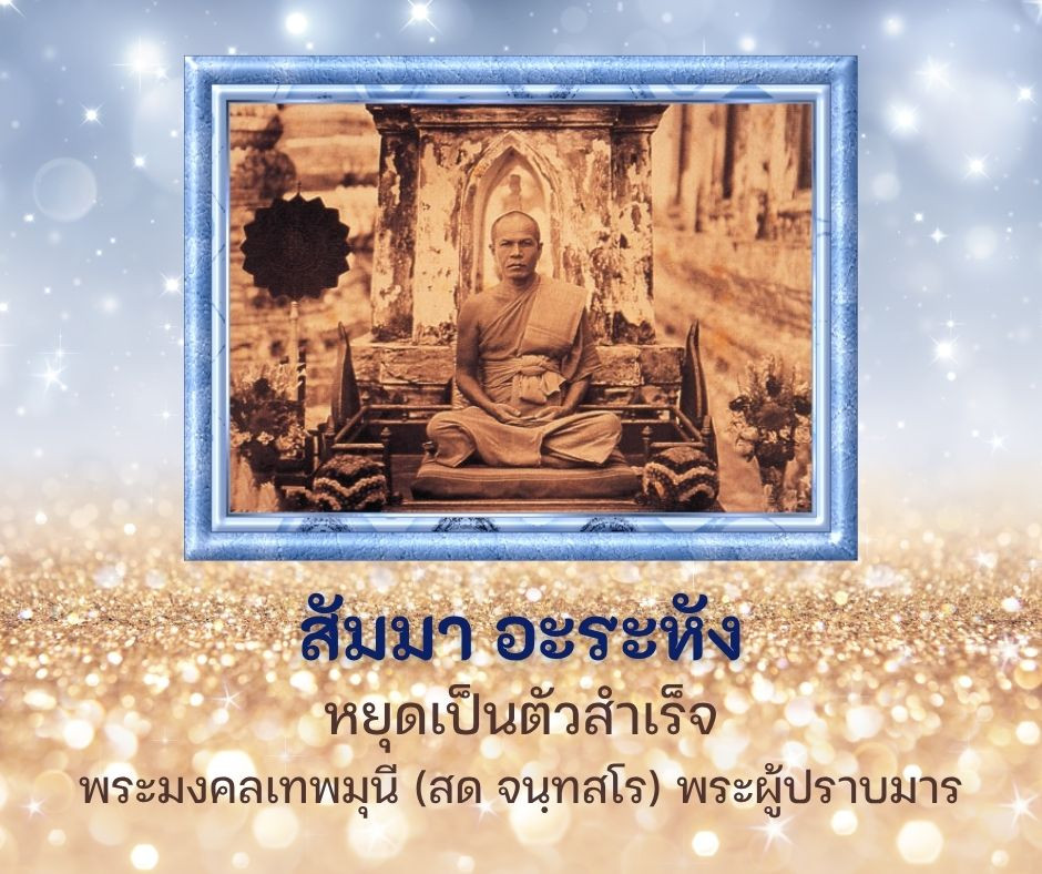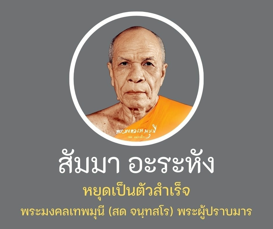 "May we constantly recall the Most Venerable Luangpu, Phramongkolthepmuni (Sodh Candasaro), the Mara Vanquisher, and keep him in mind at all times."