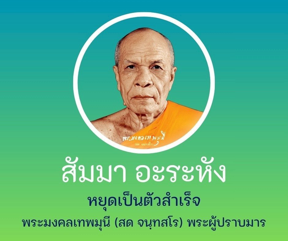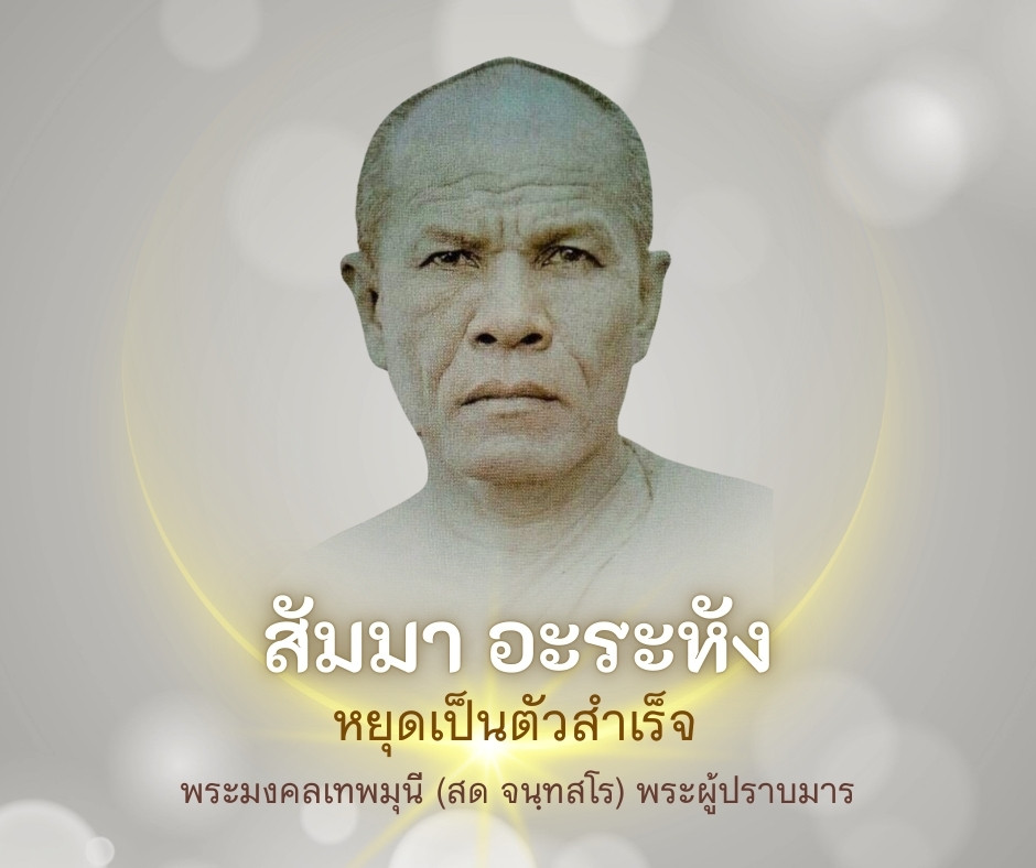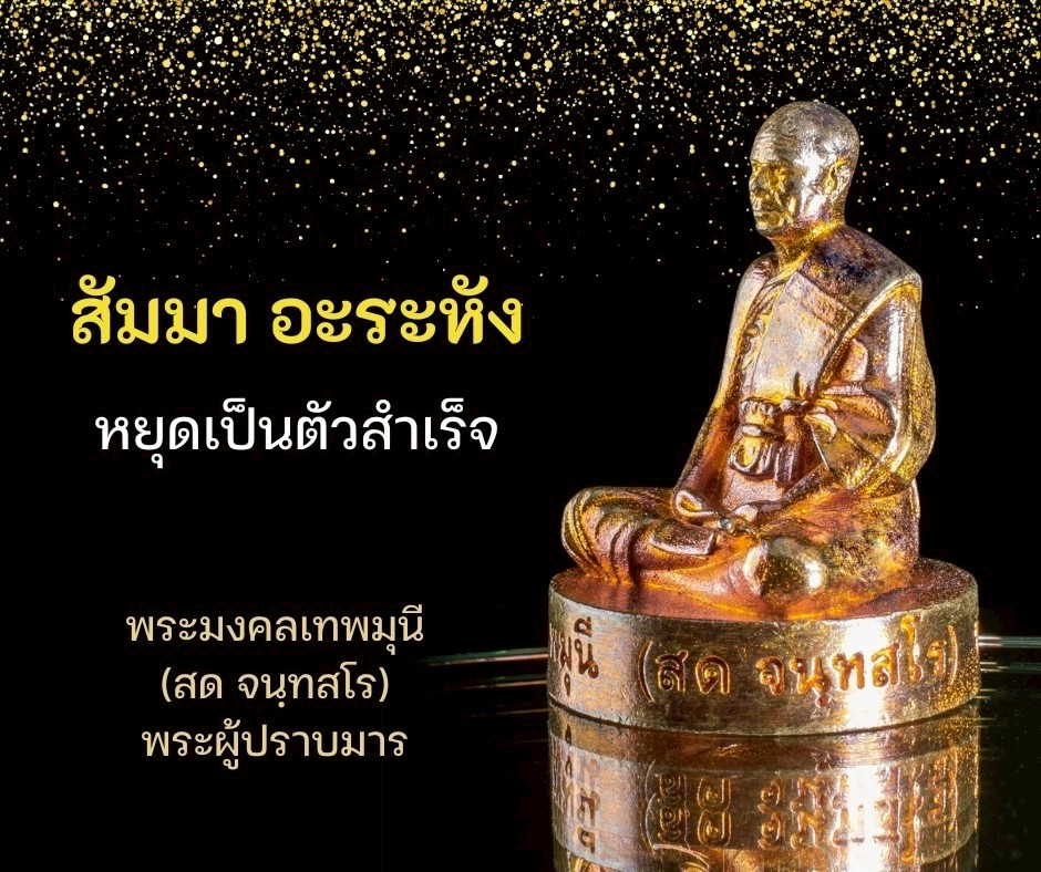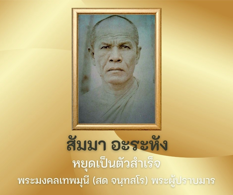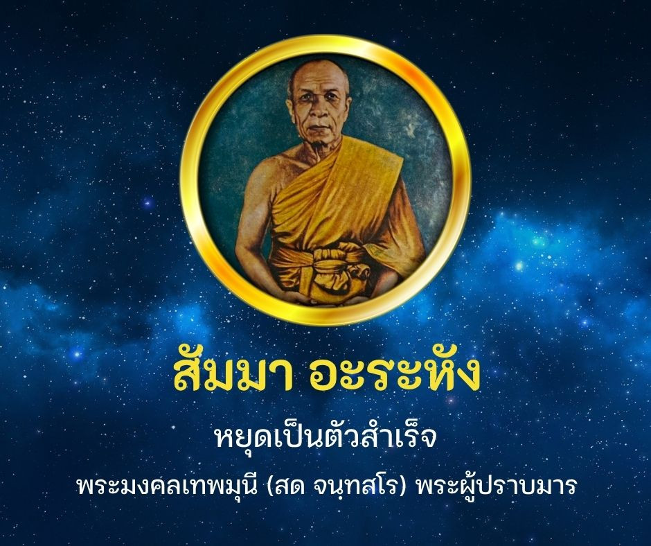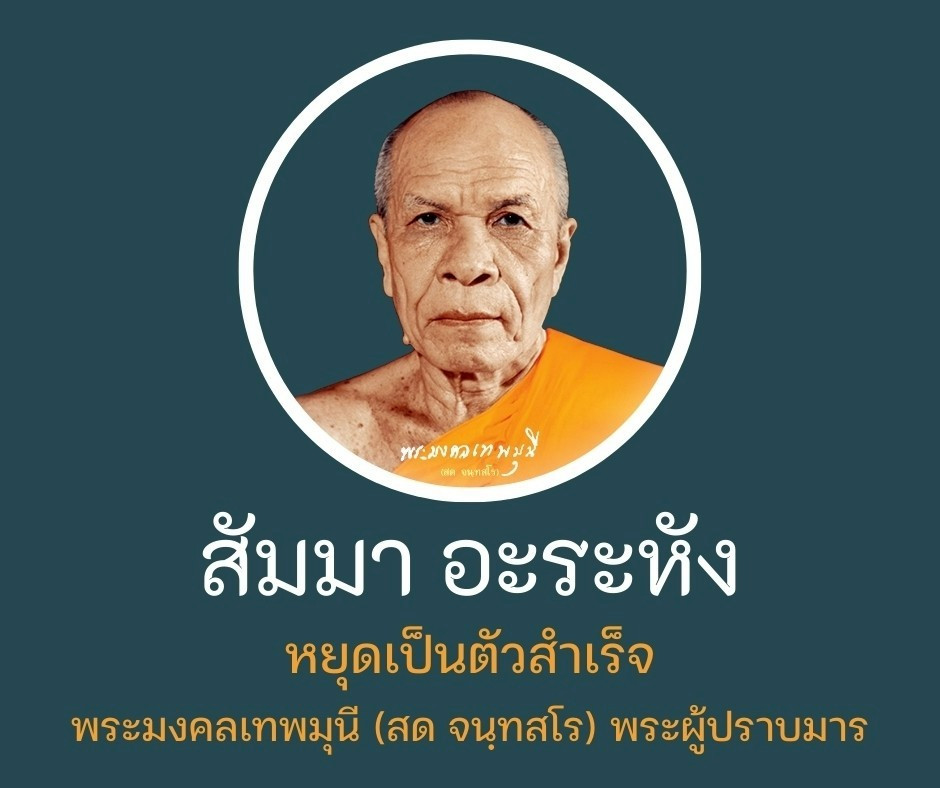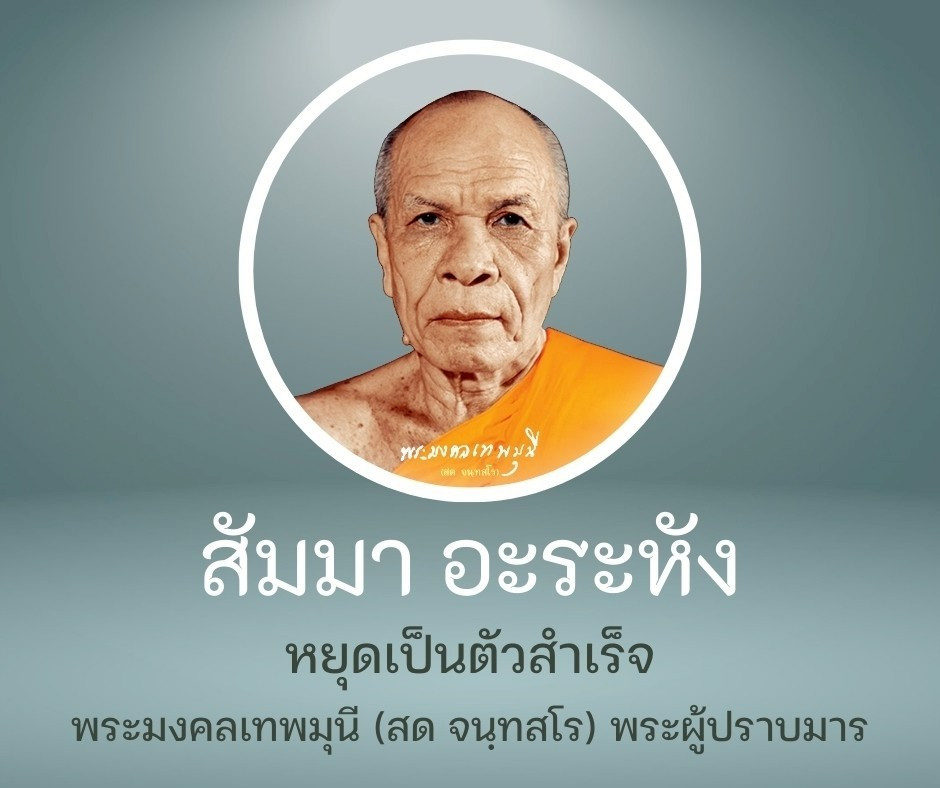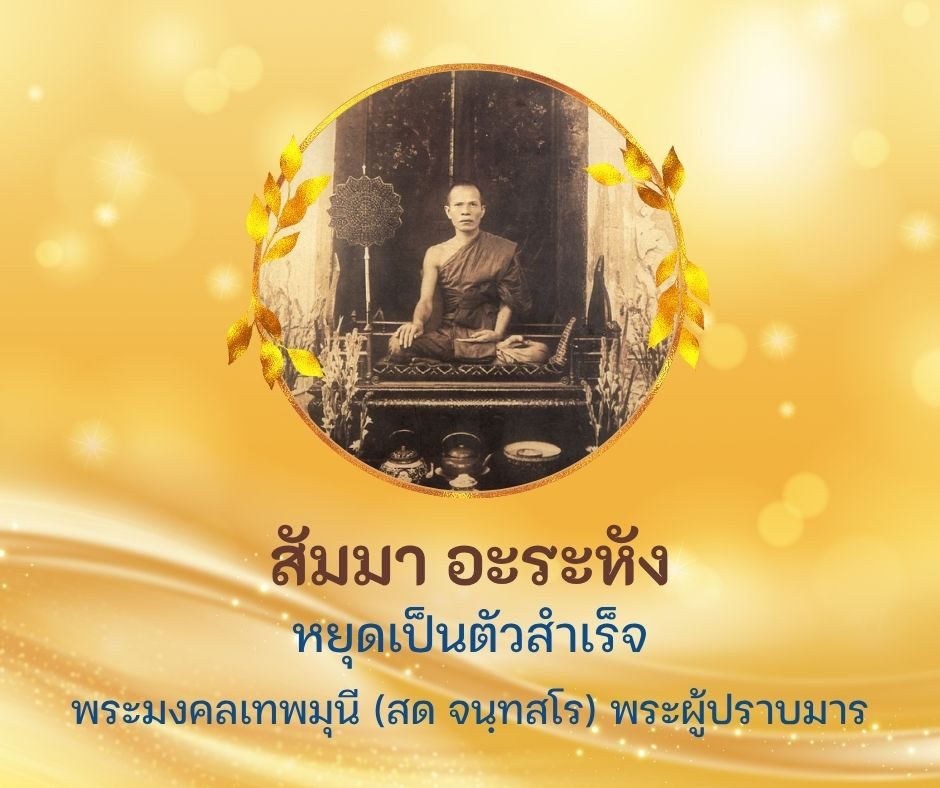 "May we constantly recall the Most Venerable Luangpu, Phramongkolthepmuni (Sodh Candasaro), the Mara Vanquisher, and keep him in mind at all times."
