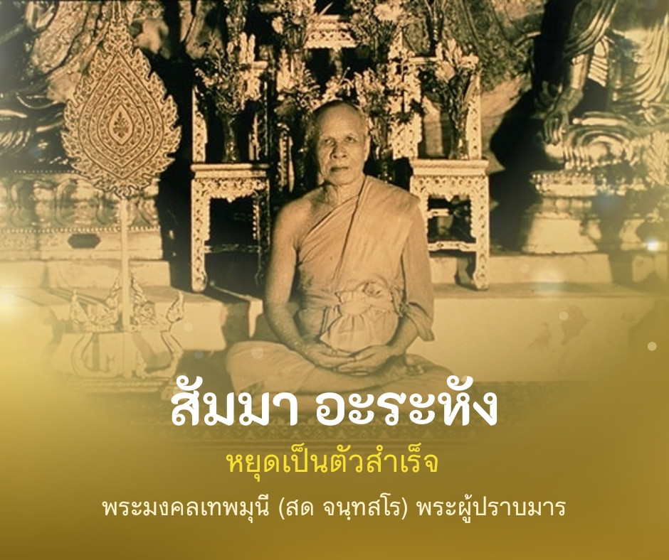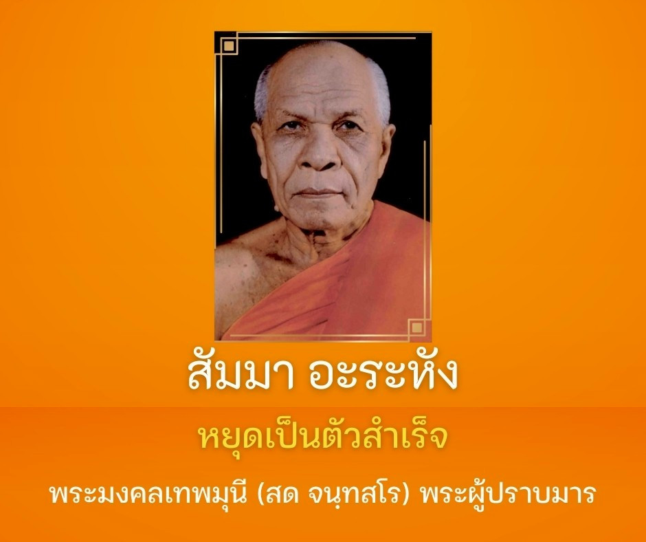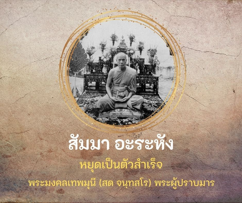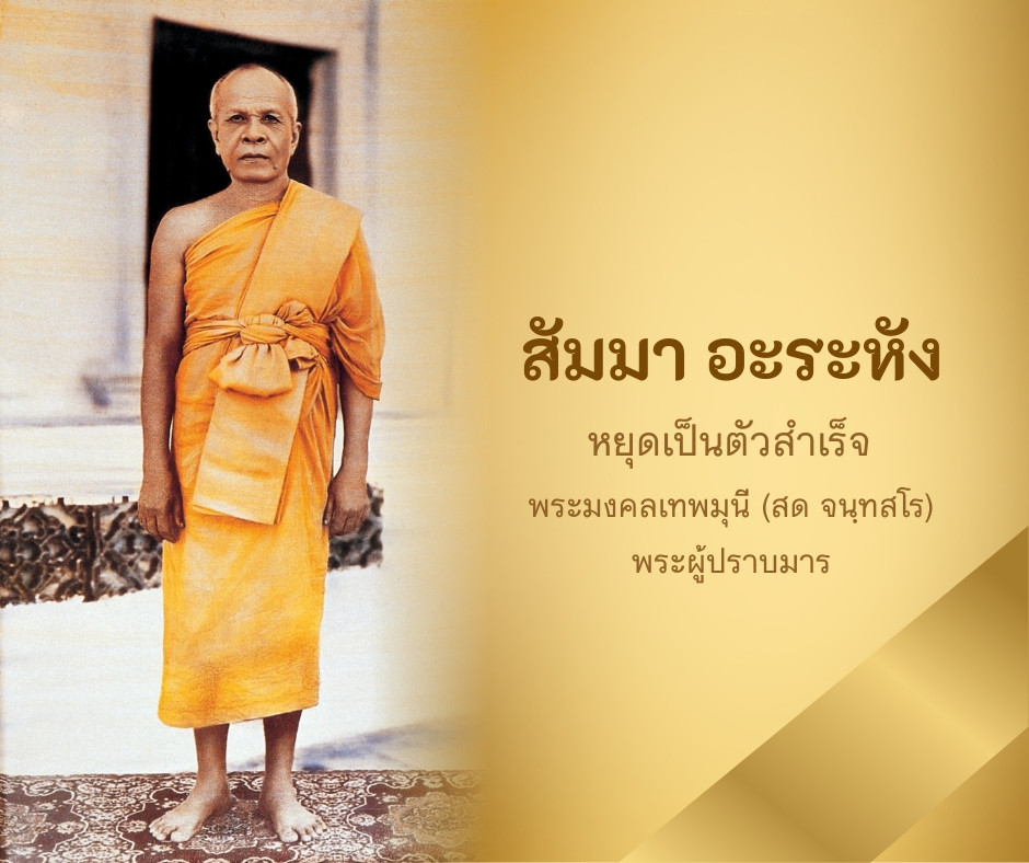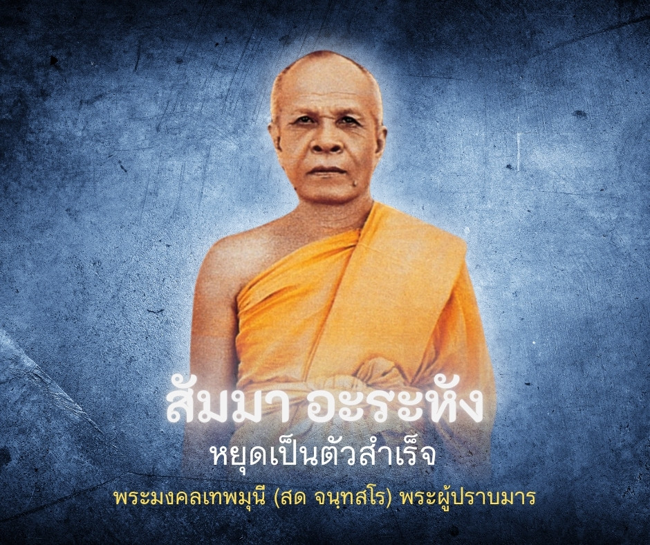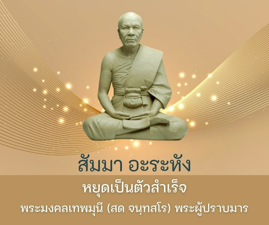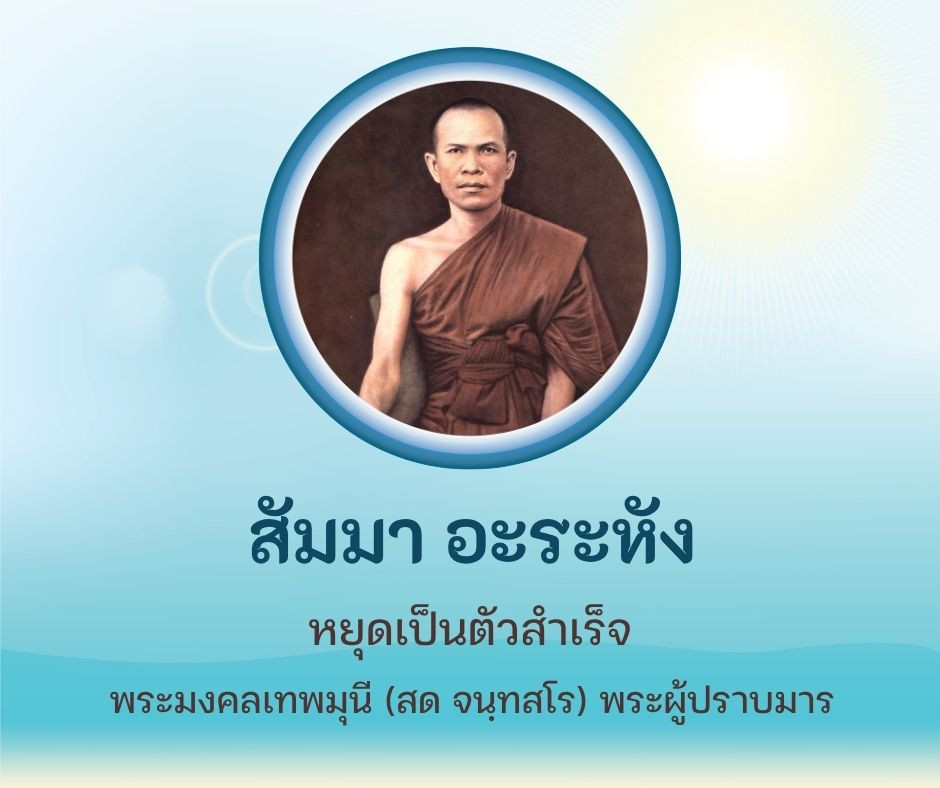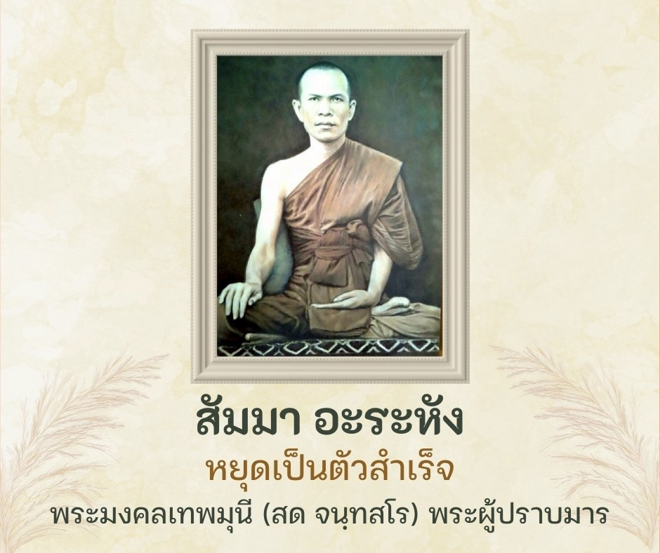 "May we constantly recall the Most Venerable Luangpu, Phramongkolthepmuni (Sodh Candasaro), the Mara Vanquisher, and keep him in mind at all times."