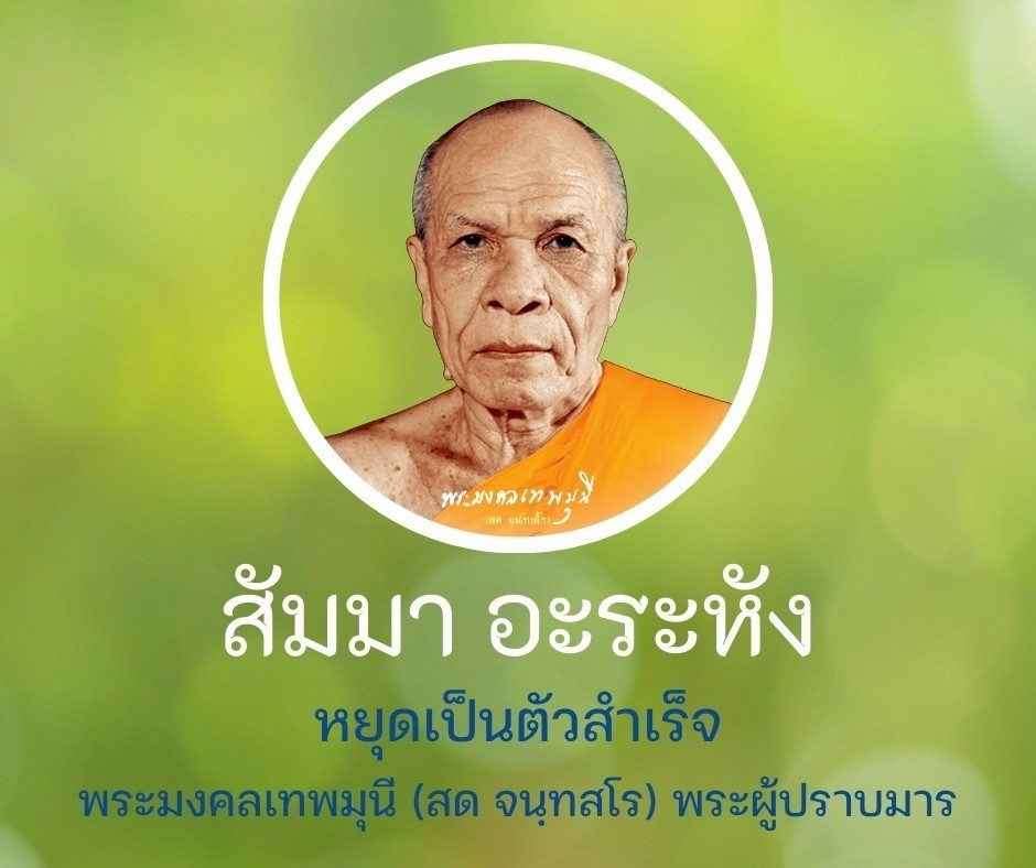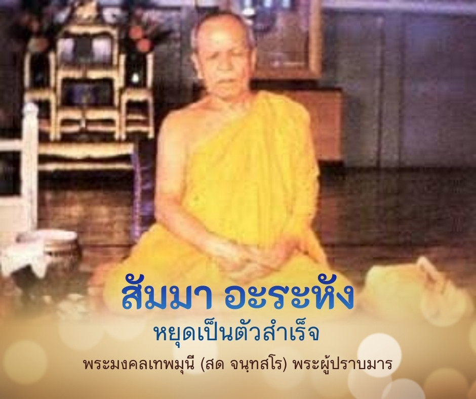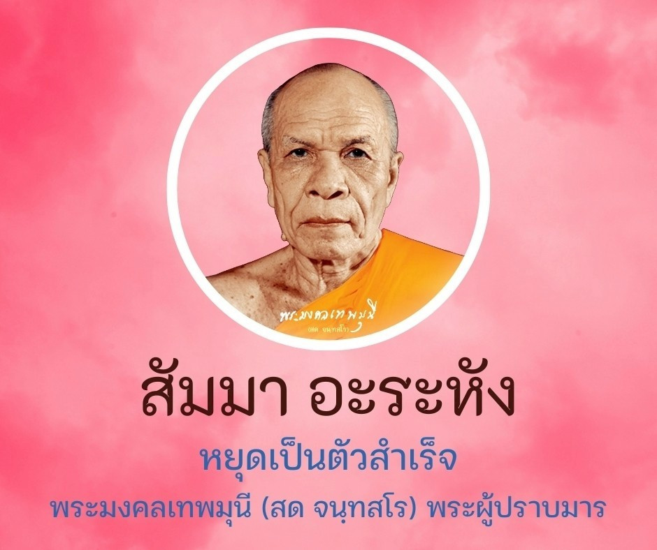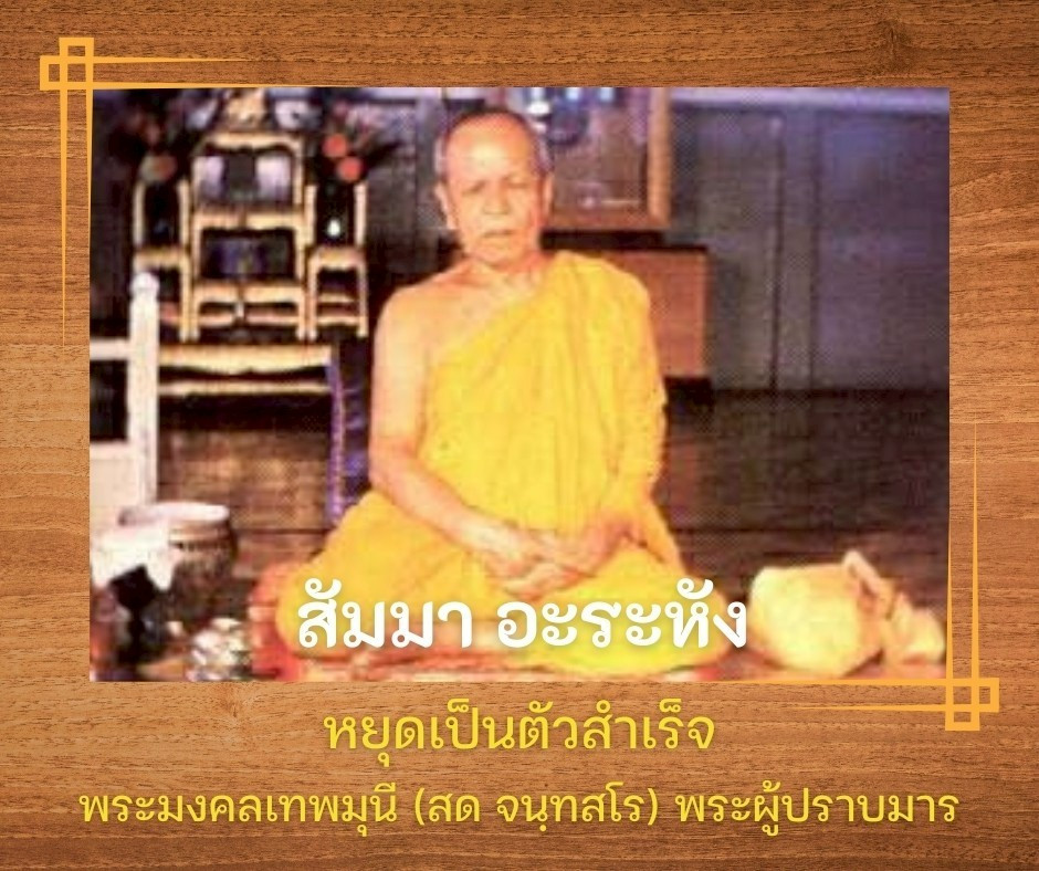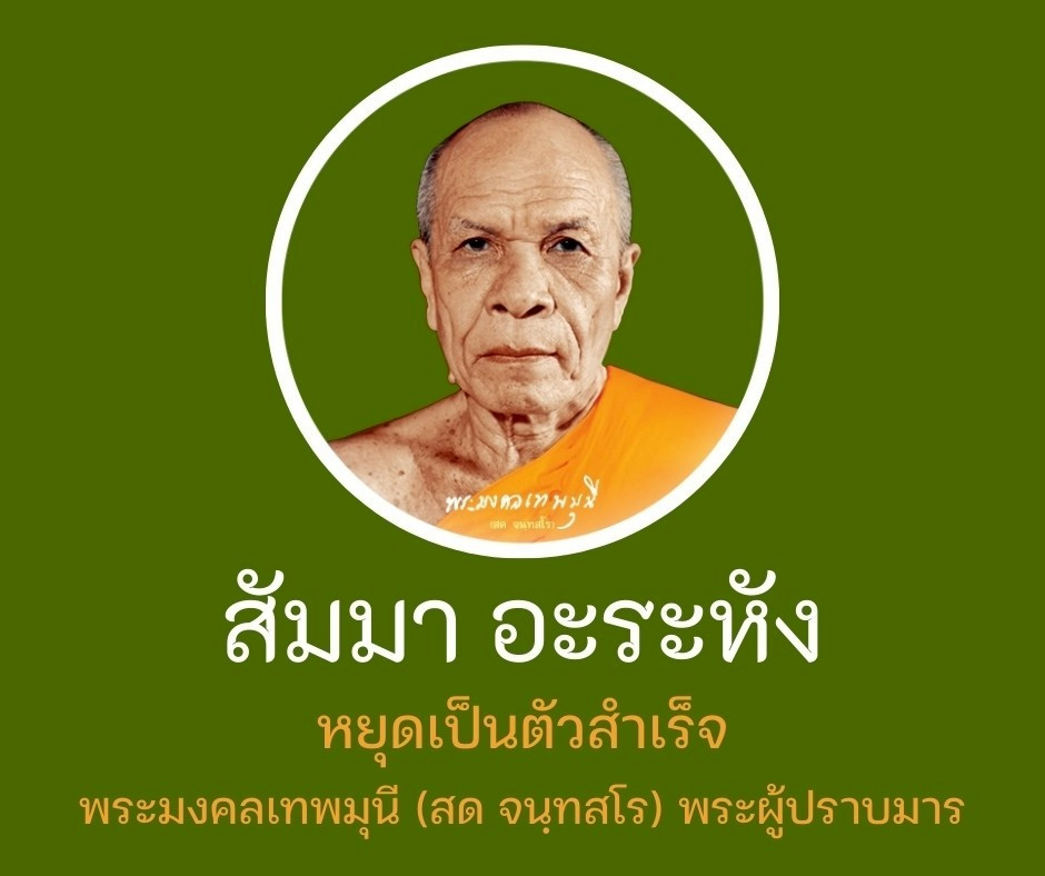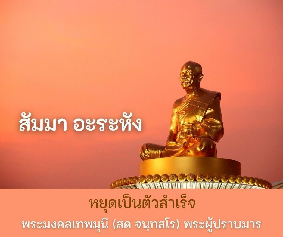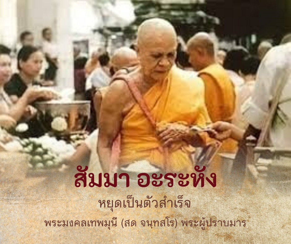 "May we constantly recall the Most Venerable Luangpu, Phramongkolthepmuni (Sodh Candasaro), the Mara Vanquisher, and keep him in mind at all times."