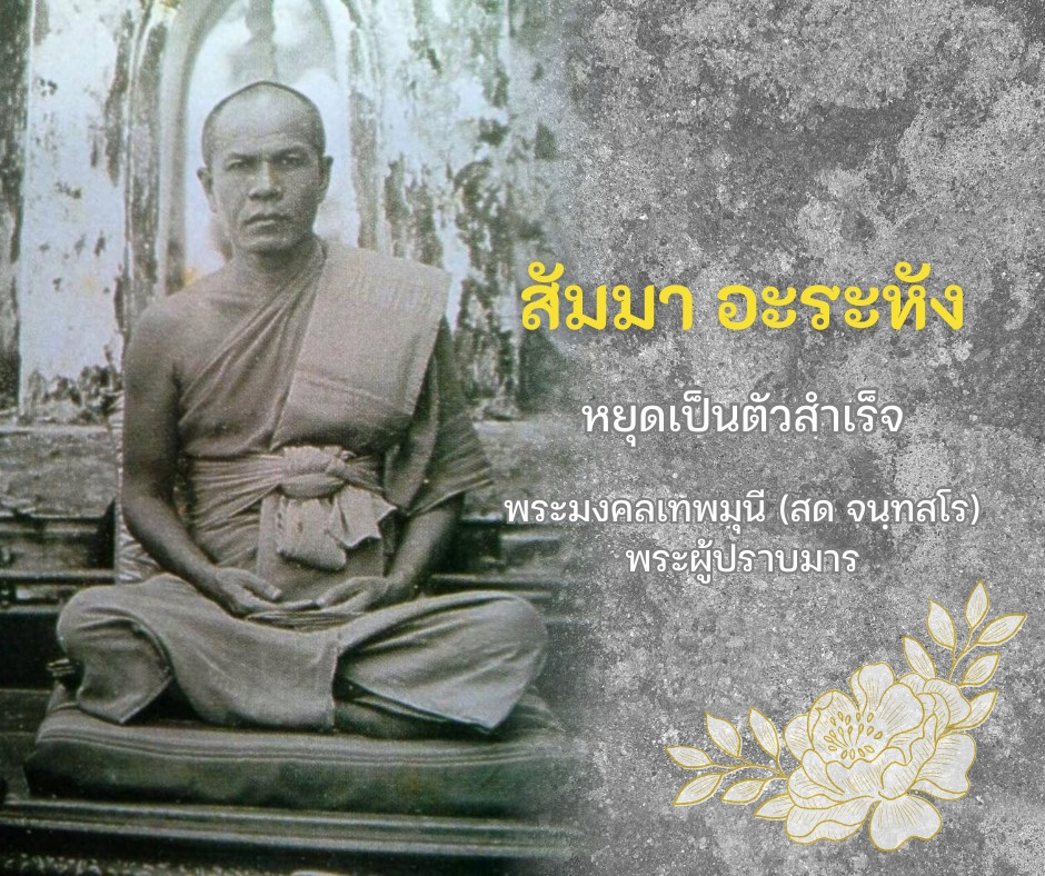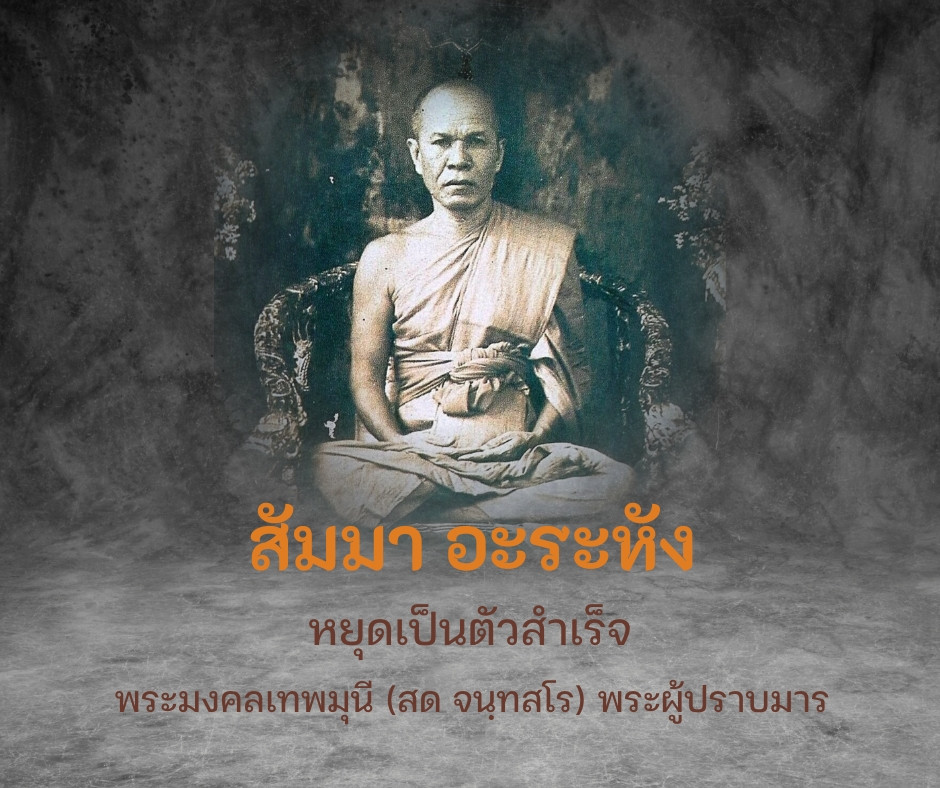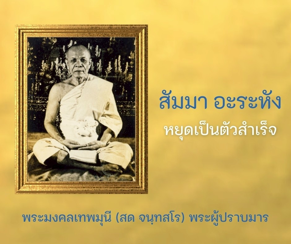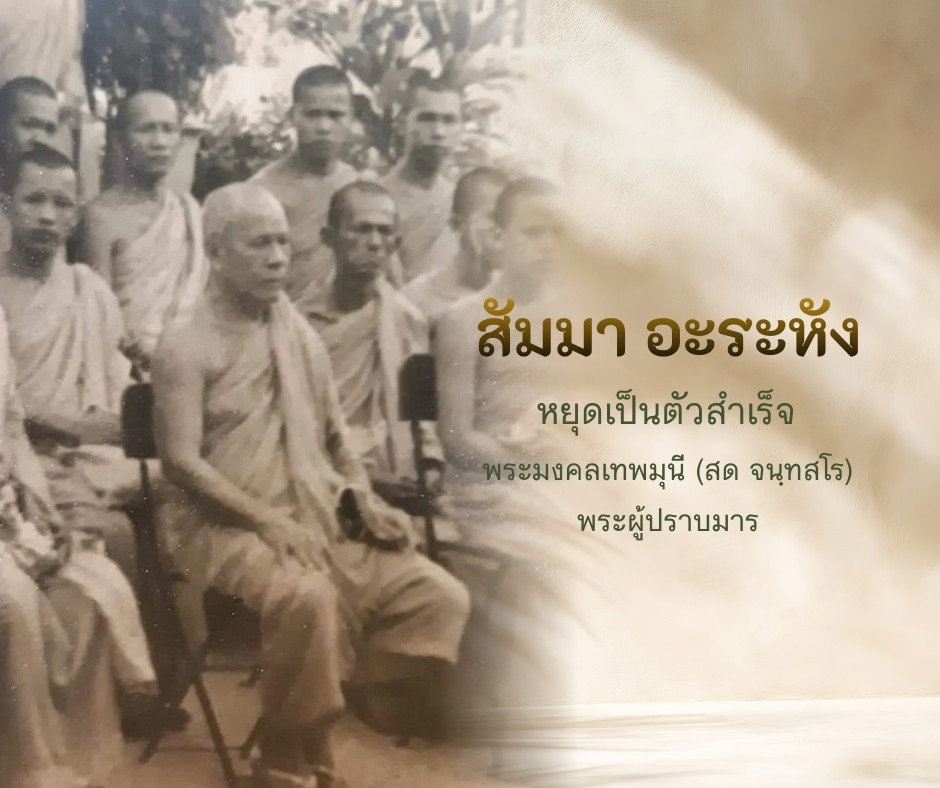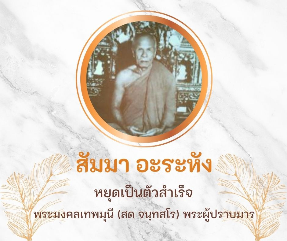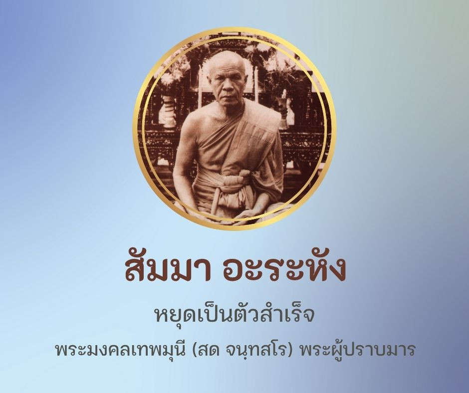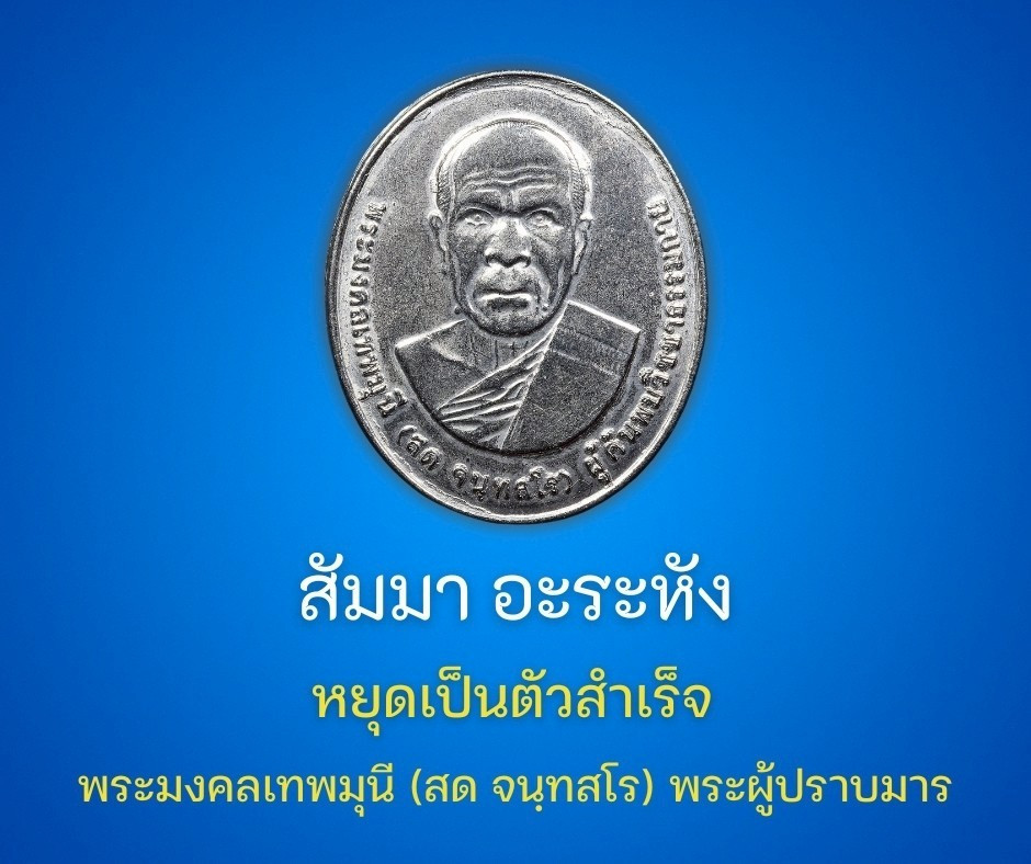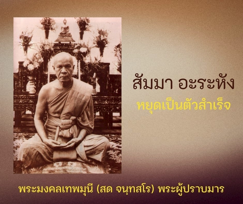 "May we constantly recall the Most Venerable Luangpu, Phramongkolthepmuni (Sodh Candasaro), the Mara Vanquisher, and keep him in mind at all times."