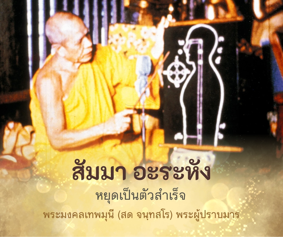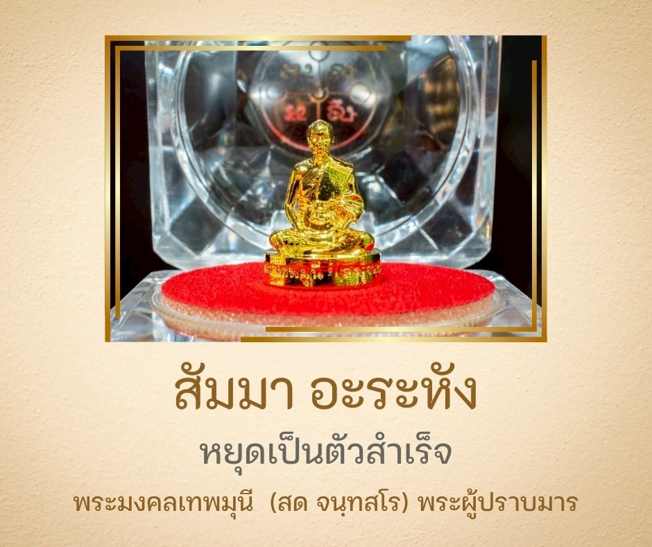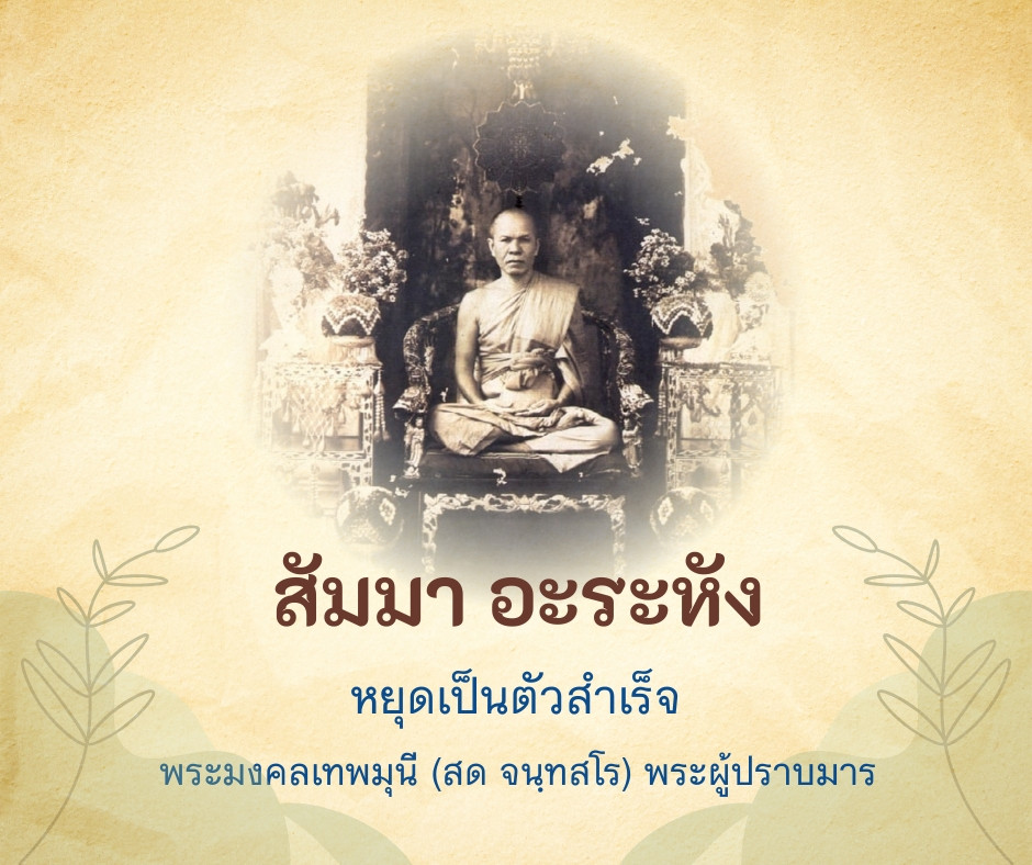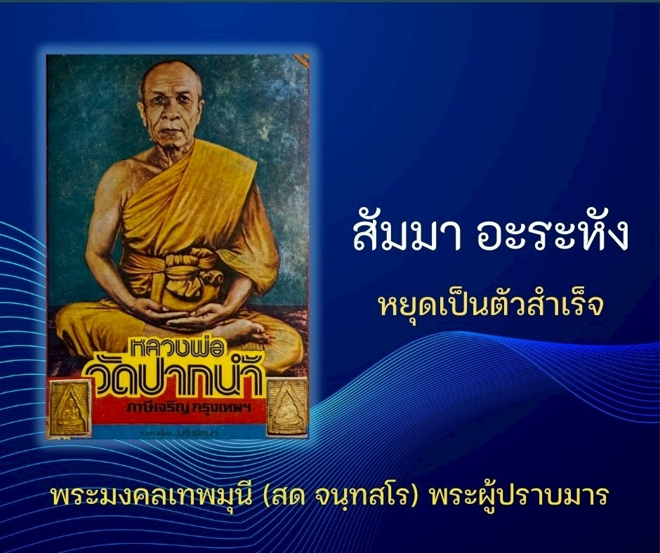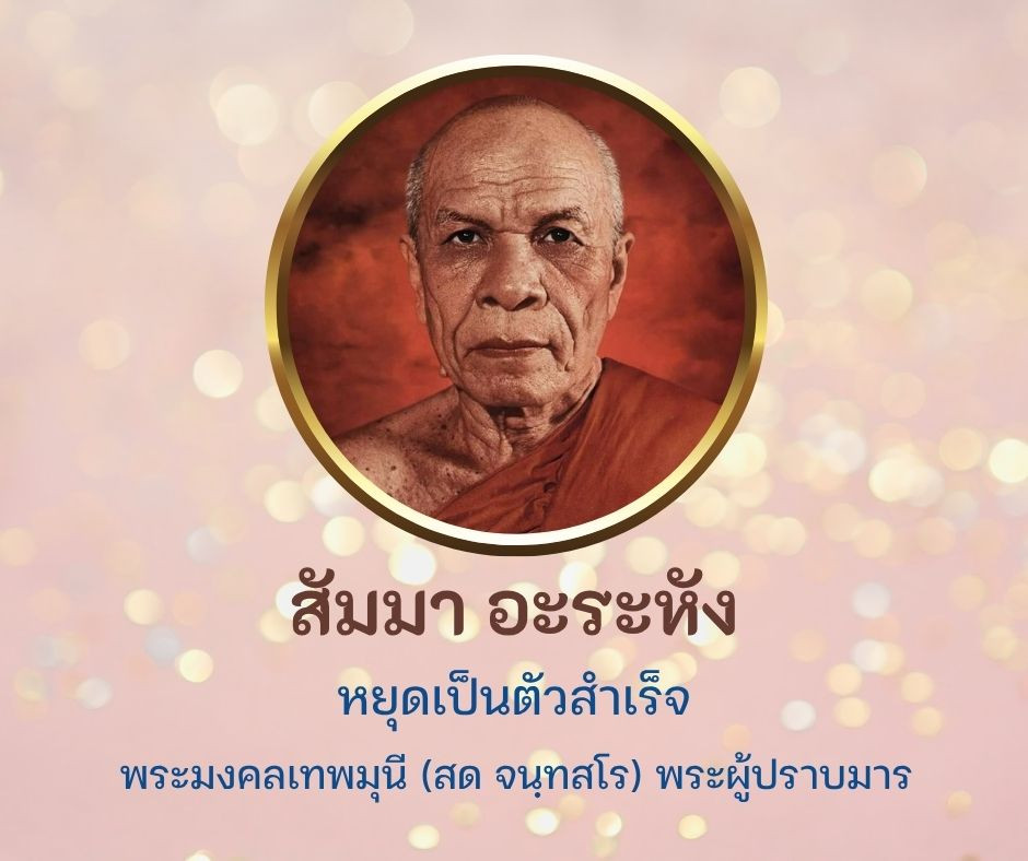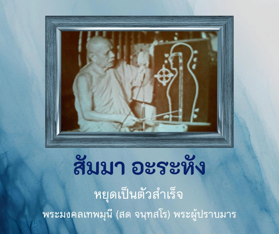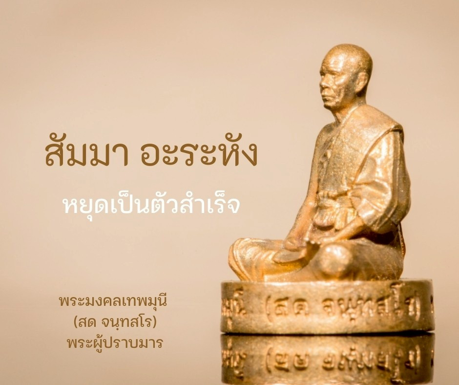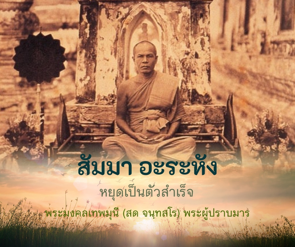 "May we constantly recall the Most Venerable Luangpu, Phramongkolthepmuni (Sodh Candasaro), the Mara Vanquisher, and keep him in mind at all times."